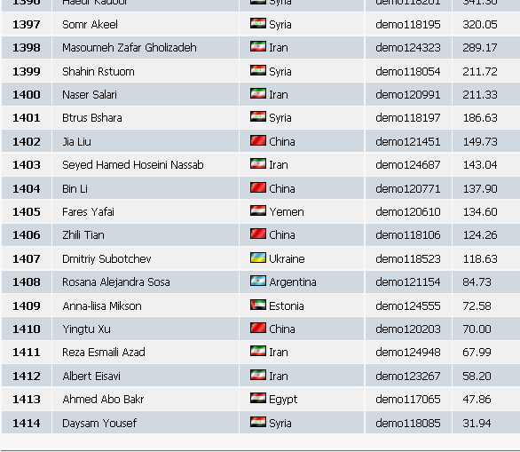 El primer hispano es un colombiano, Carlos Mario Ortiz Arango, que se encuentra en el puesto 13 con una equity de 16.788,01$.