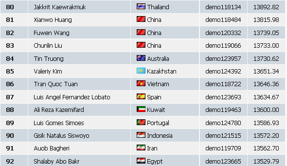 El ganador de la anterior edición, el ruso Vitaly Petushkov, se encuentra en la posición 141 con una equity de 11.248,89 $.