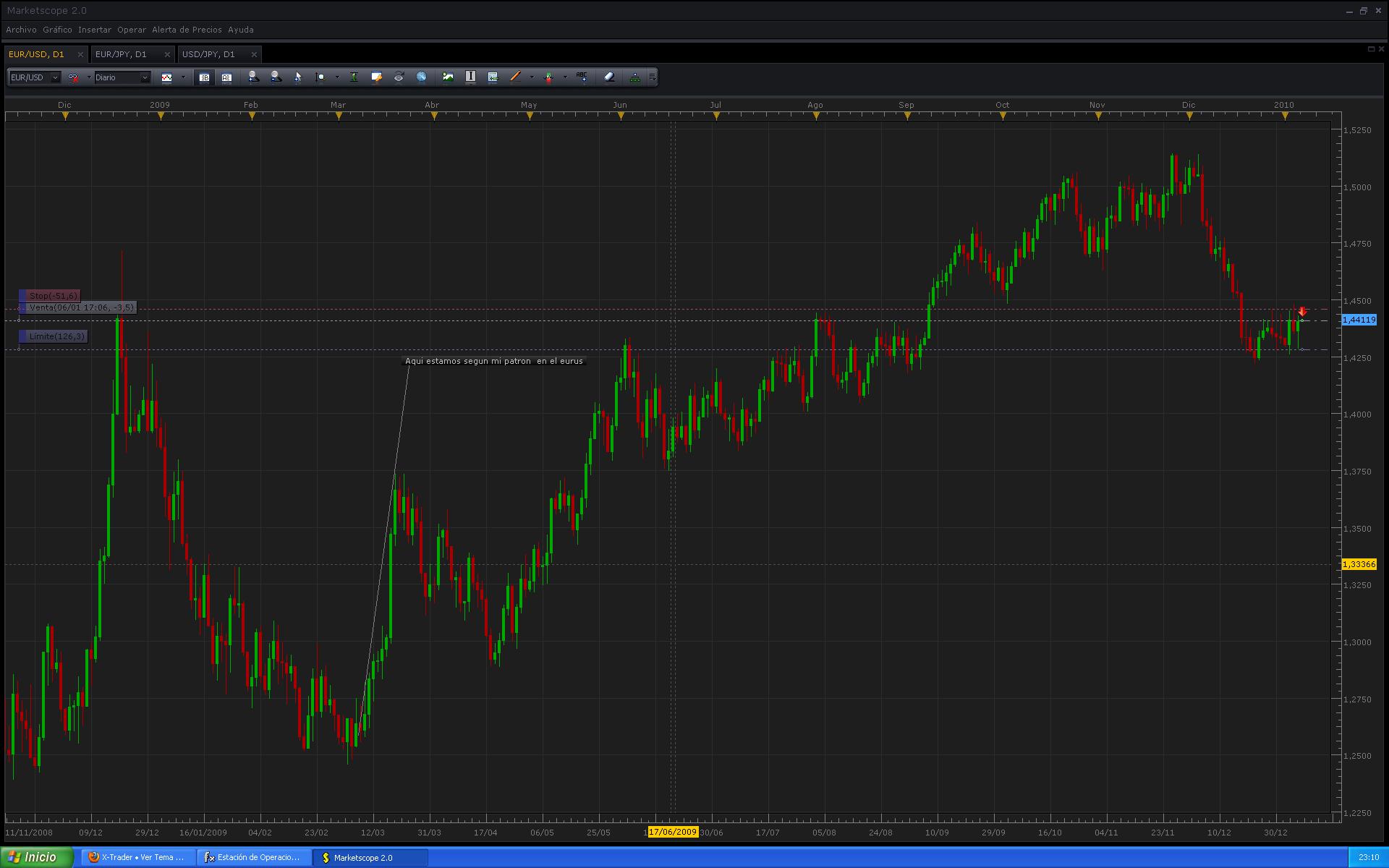 A las ocho de la noche he vuelto a abrir las tres ordenes pero esta vez no les he puesto el stop corrido, sino que se lo he dejado fijo, para abrirlas me he fijado en lo que hicieron las cotizaciones respectivas el dia 10 de marzo del pasado año 2009 y creo que he acertado bastante... o por lo menos asi pienso yo, por ahora no van tan mal... me han salido compra el eurus y el euryen y venta el usayen y asi los he puesto...