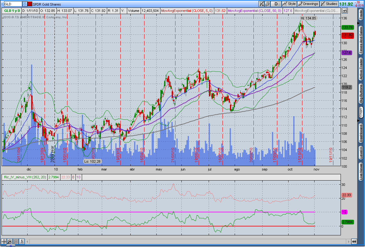 He re-comprado varias opciones y me he quitado el vencimiento de Diciembre, quedando el gráfico ligeramente bajista; esto es a 1 día antes de las elecciones en EEUU y antes de la reunión de la FED sobre el QE2.