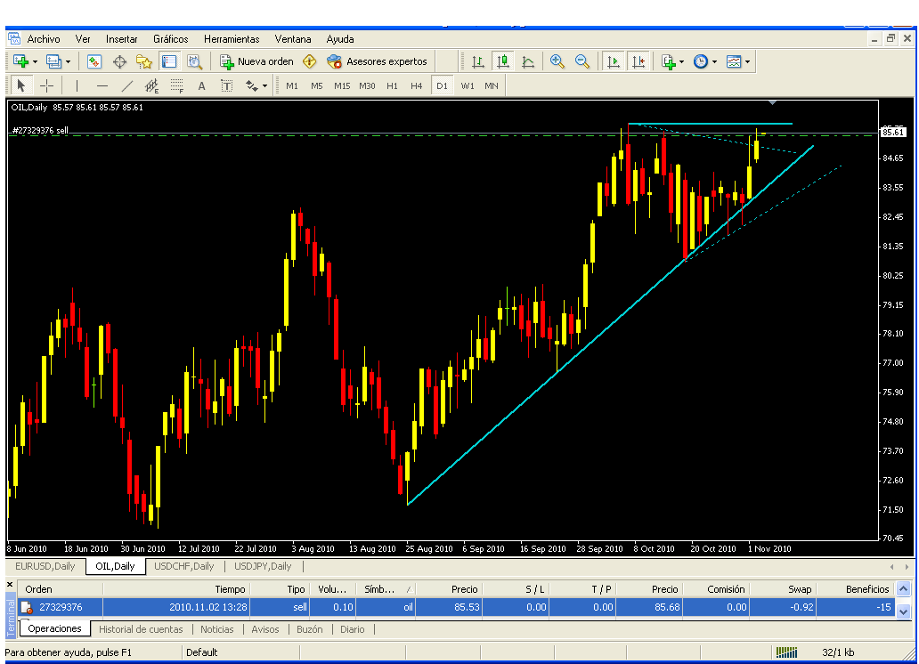 Ya me he puesto los pantalones cortos ayer-hoy, día 2....no se si me arrepentiré, perop no quiero esperar a que se forme el doble techo ese de los pajis.....igual dejan caer esto a plomo, yo lo esperaba mucho más arriba para navidad, pero para eso ya tendría que haber reventado hace días al alza. así que.......vamos allá :-) .pero mi MM de buena persona sólo me permite 4 fraciones poco apalancadas :P