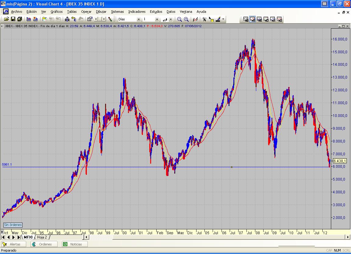 Viendo como esta el panorama con lo de los 100.000 millones, cabe esperar que el Gap sea alcista, pero sigo manteniendo que el san bajara a tocar la linea de soporte marcada en color amarillo. Ya me paso a las 09:00 para analizar el gap :P
