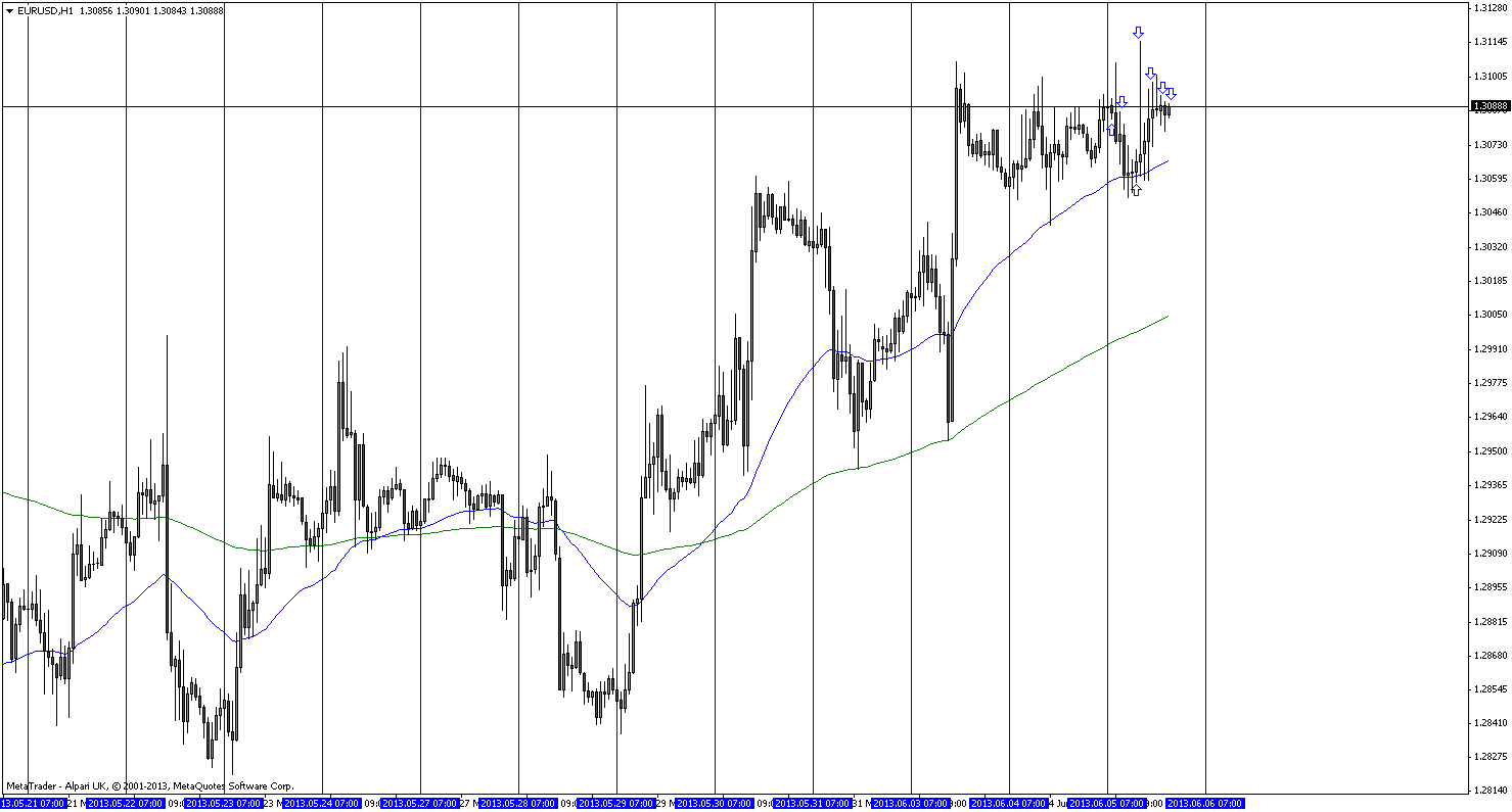 - El segundo comentario a destacar es el del pequeño círculo amarillo que veis rodeando las velas finales. La vela que toca la línea roja de puntos es la que sigue a las dos grandes velas alcistas. Normalmente, a estas horas y con una situación así, se suele producir un rango de consolidación muy pequeño. Esta vela tiene unos 20 pips, y habitualmente las siguientes velas del resto del día no suelen ir más abajo después de un subidón como ese. A efectos de no perder órdenes, en una situación así yo suelo dejar una Sell-Stop en esa vela, y si las siguientes se producen más arriba, no muevo la orden, ya que no vale la pena arriesgarse a que se active y luego se pierda si mañana seguimos subiendo.