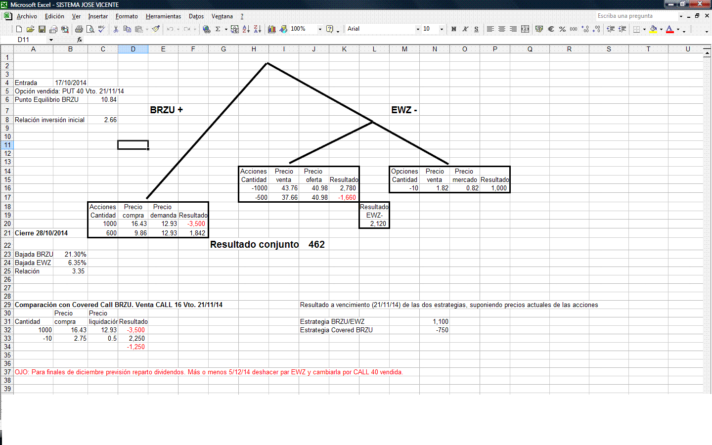 Creo que este tema de spread lo manejas tú mejor que yo, de todas formas de explico algo que vale la pena tener en cuenta: Si uno de los ETF esta apalancado x3, hay que entrar con la relación 1x3, como normalmente el precio no esta relacionado de esta manera, se debe igualar comprando o vendiendo más o menos acciones de uno u otro (no se si me explico), es decir, que el total de la inversión esté relacionado en 1x3 ó 1x2.