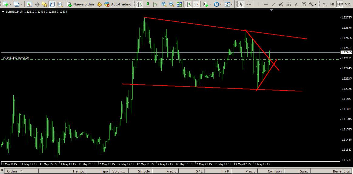 como comenté ayer, entre en las dos rupturas que marcaban las trendlines, aunque la segunda no la publique aquí porque era otro trade y no venía a cuento.