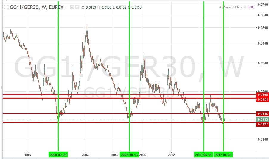 Lo que vemos es que la relacion BUND/DAX esta en el suelo historico donde se producieron todas correciones de las ultimas dos decada