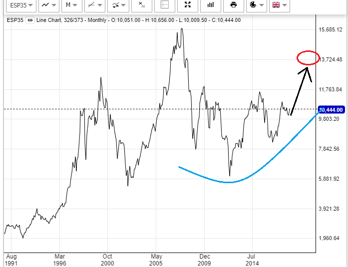 Mi sesgo es alcista si Europa no rompe al alza este año que parece que es el mejor año para Europa ¿cuándo será? si espera demasiado los datos macro así como las subidas americanas se esfumaran y no habrá dónde apoyarse. Una subida del 20-30% para caer un 20% posterior sería lo idóneo.