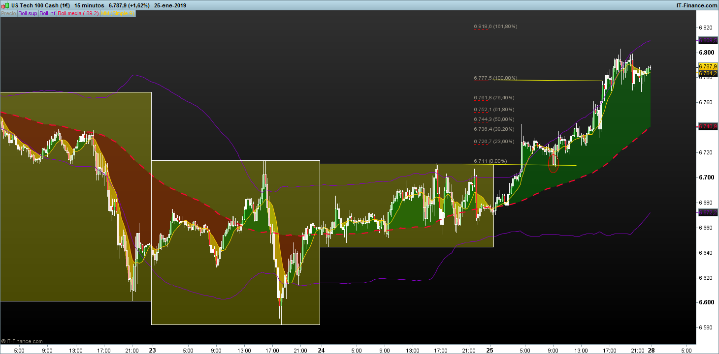 Para operar el sistema en intradia, toma como referencia zonas de máxima energía ( soporte/resistencia), el MAXIMO-MINIMO de sesión previa y las extensiones del rango cuando se rompe