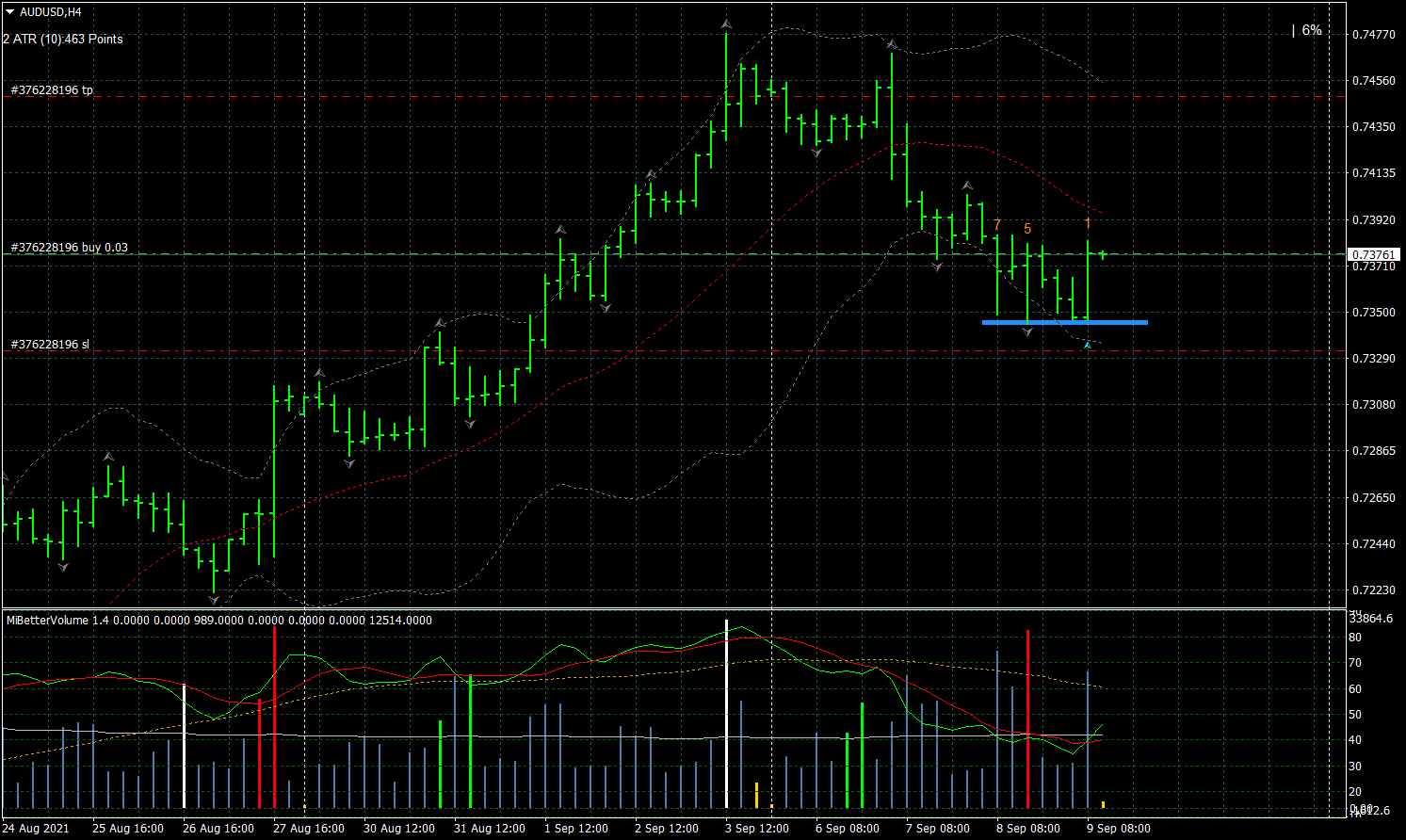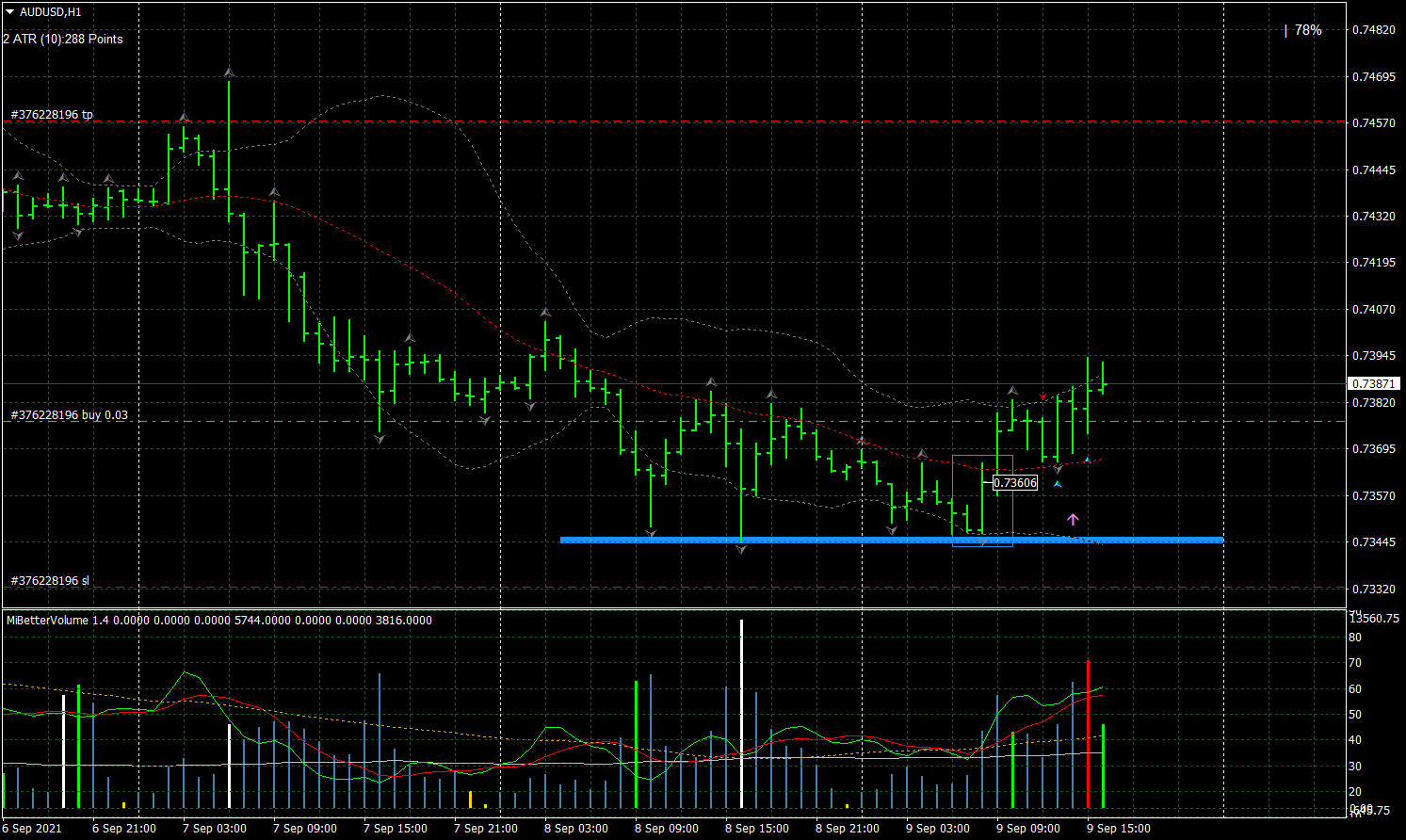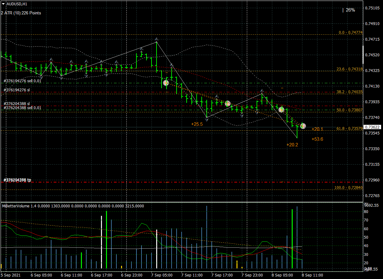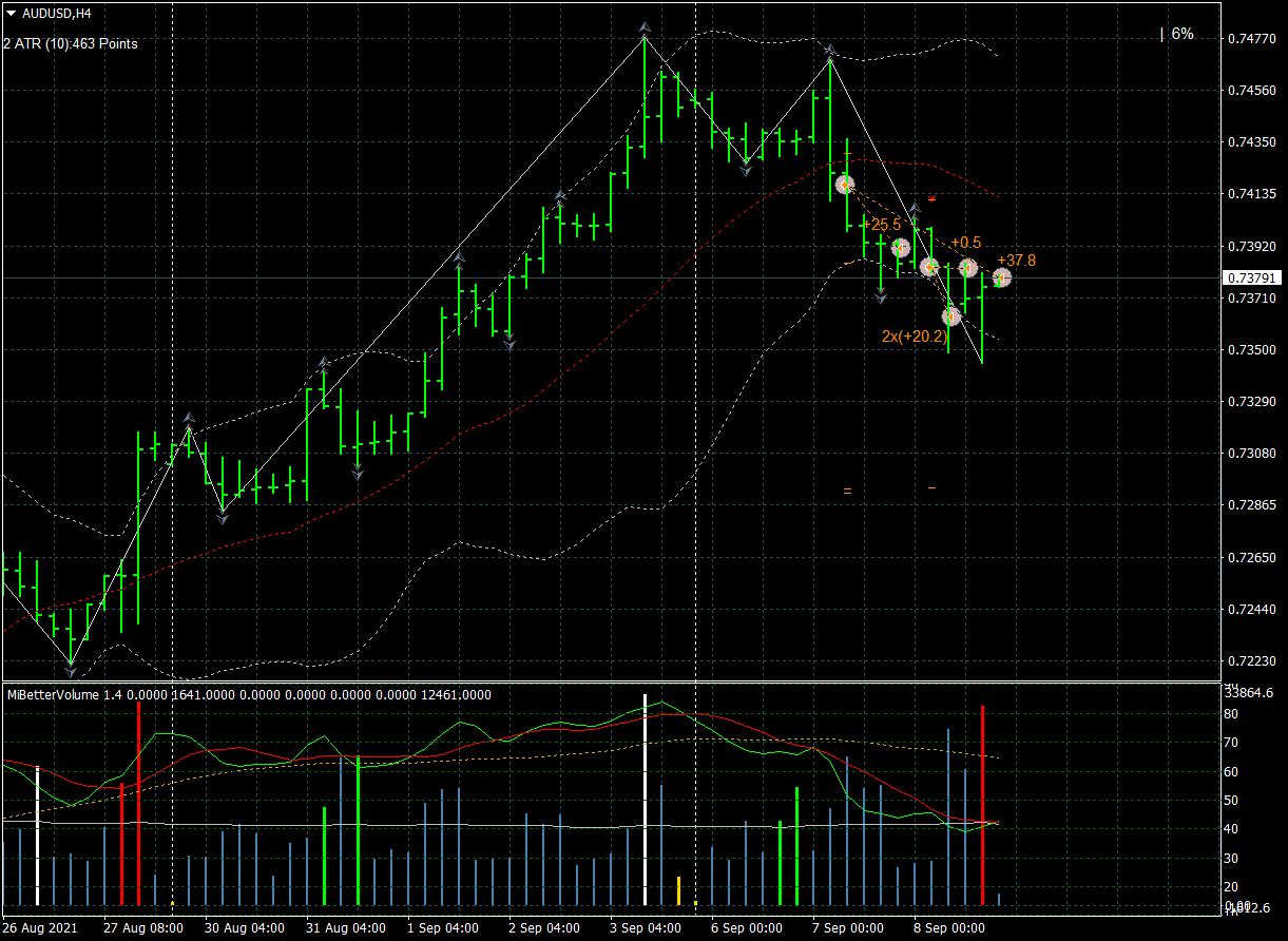 A falta de 45 minutos para el cierre de la barra de 4 horas, viendo volumen de parada me bajo a H1 para ver que está pasando ahí. Veo volumen climático, y con muchas dudas disminuyo la posición. Ahora estoy con el mismo tamaño que cuando entré al principio pero habiendo tomado algunos beneficios.
