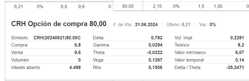 El precio se ha mantenido por encima de 80 por lo que sólo se ha beneficiado del valor temporal por Theta.