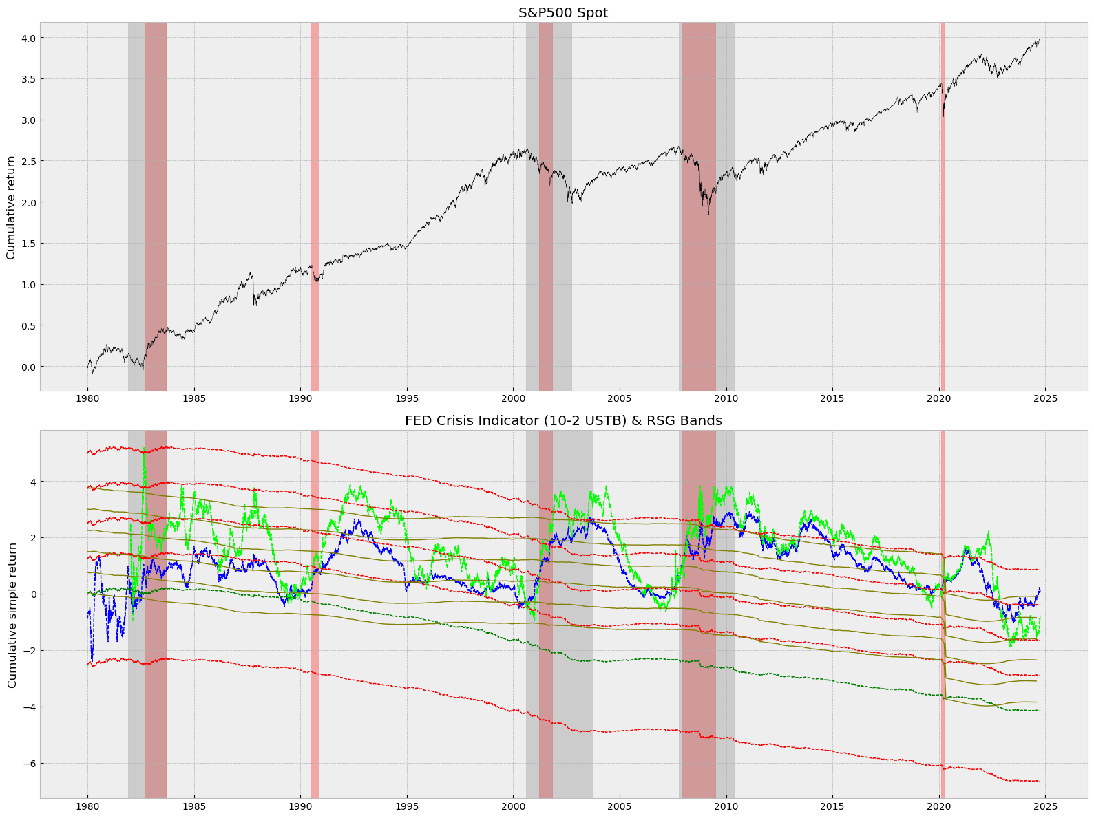 Tras calcularlo bien para EEUU, es decir con la M y Bandas RSG en negativo para EEUU, como se hizo para Alemania, el inicio de las crisis en EEUU, se produce del mismo modo que para el país germano.