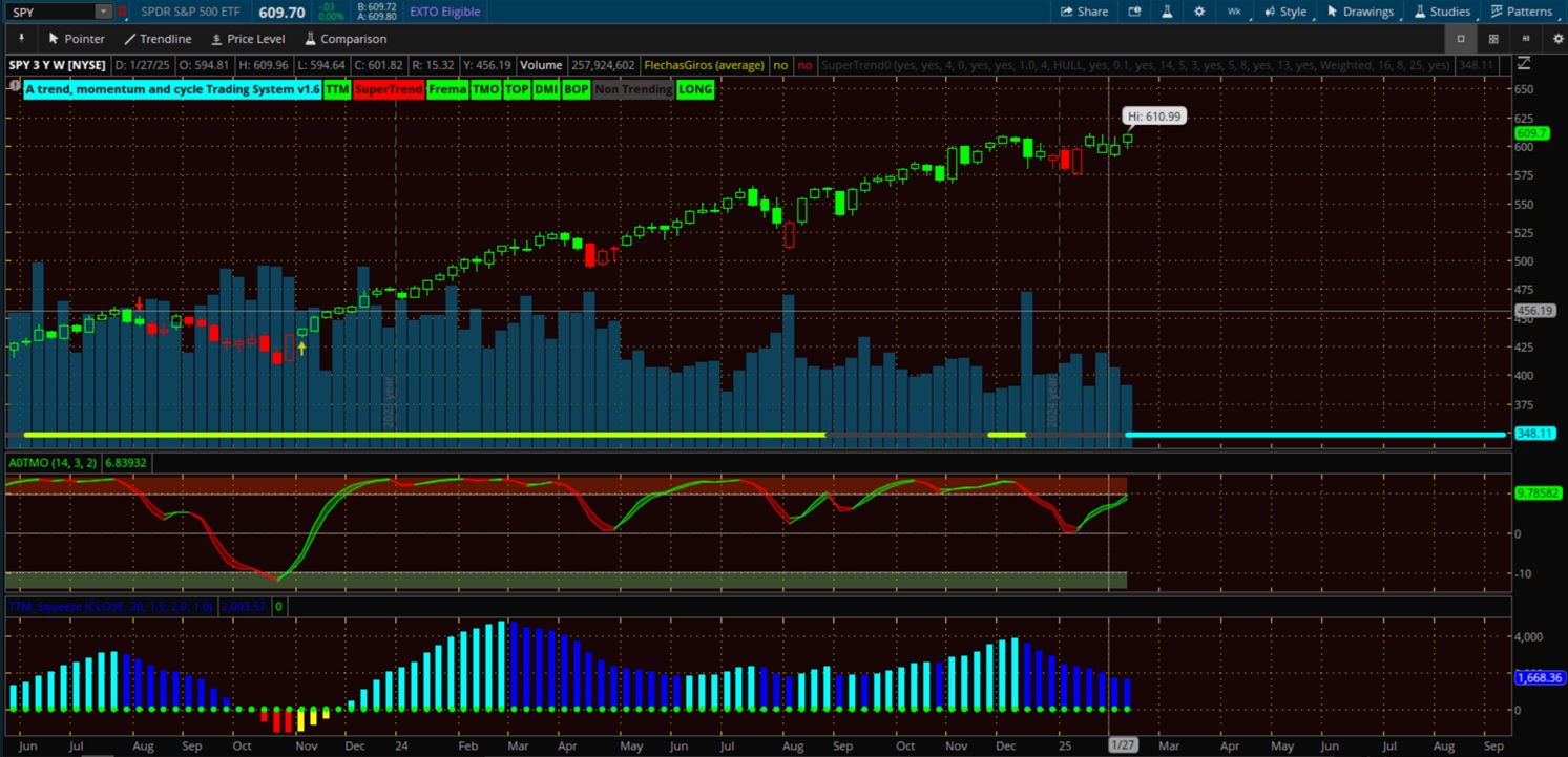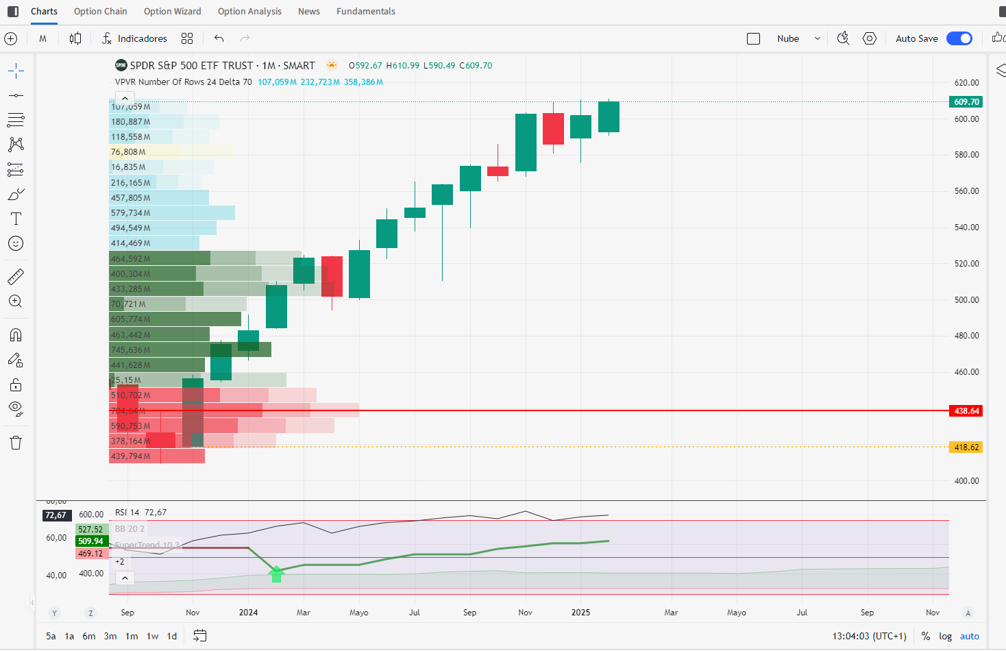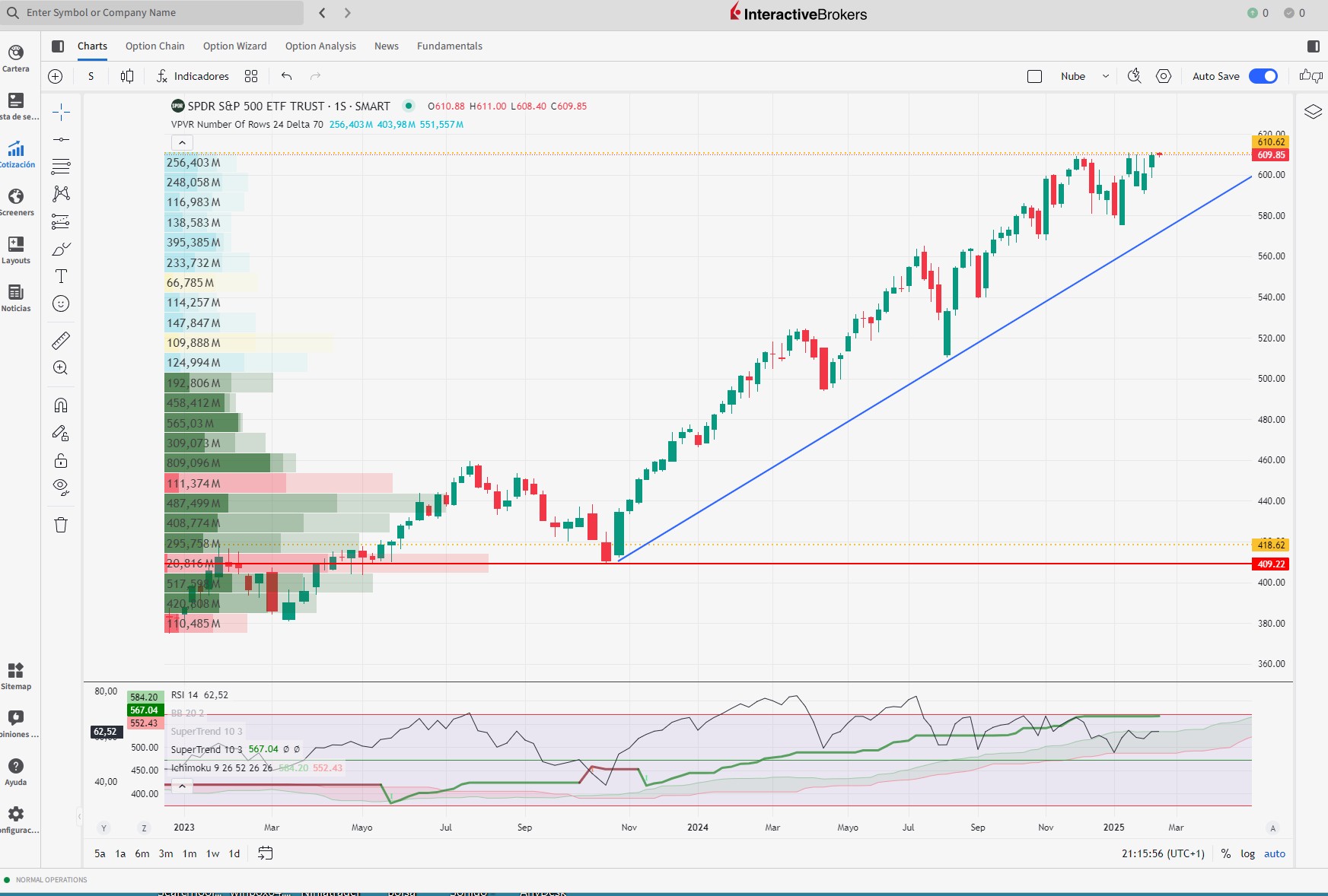 Es un universo y cada día aparecen nuevos ETF, derivados de diferente índole como está sucediendo con las crypto que cada vez hay más solicitudes de emisión tanto ETF como derivados. Véase BTC que además de ETF´s ya se pueden negociar futuros y sus opciones. Y cuando tienes un activo en la mira, otro universo de indicadores, osciladores y demás herramientas.Gibranes escribió: 18 Feb 2025 21:28 Aquí lo tenemos en semanal. Nunca usé la nube japonesa por inercia de los comentarios en el foro; la añadí para comparar con la súper trend que más o menos veo; son iguales y ahora hace de resistencia.