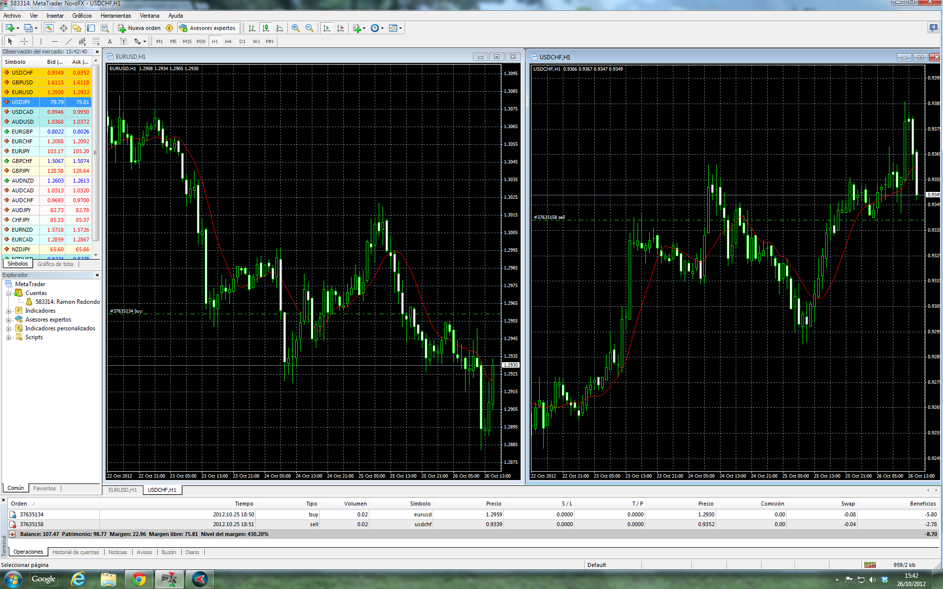 venga alberto, revisa eso, yo llevo 6 dolares ganados, y solo mirando y viendo como funcionaba la cosa... bueno miento!, llevo 6,36 dolares o euros que ya no lo se... pero mis saldo es de 106,36 y solo abriendo por primera vez dejando unas ordenes abiertas, yendome a merendar un poquito de jamon, y cuando he venido, casualidad! las tres para arriba... asi que he cerrado, para ver como cerraba el broker, y se me ha quedado asi, que conste, que cuando he empezado a cerrar, llevaba algo mas que 6,36 euros de ganancia, pero ya se sabe!, siempre barren para casaaaa...