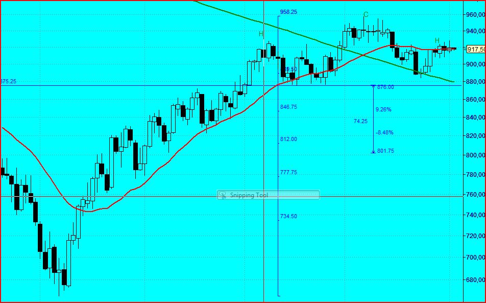 Las últimas dos correcciones son prácticamente iguales y no se ha retrocedido completamente el último segmento alcista a 1020. Por lo tanto evitamos los recuentos porque no están nada claros, así que la tendencia sigue siendo alcista y no se puede descartar una vuelta a máximos.