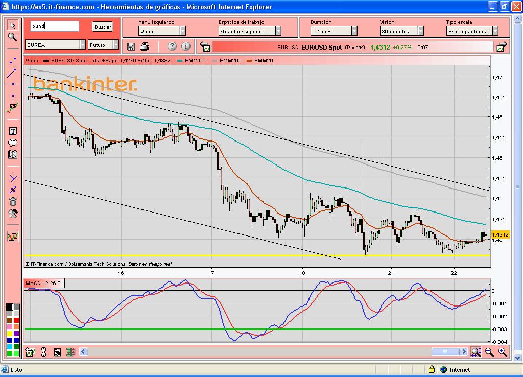 Podemos trazar un canal con una zona de control muy bien delimitada, 1.4350-1.4360