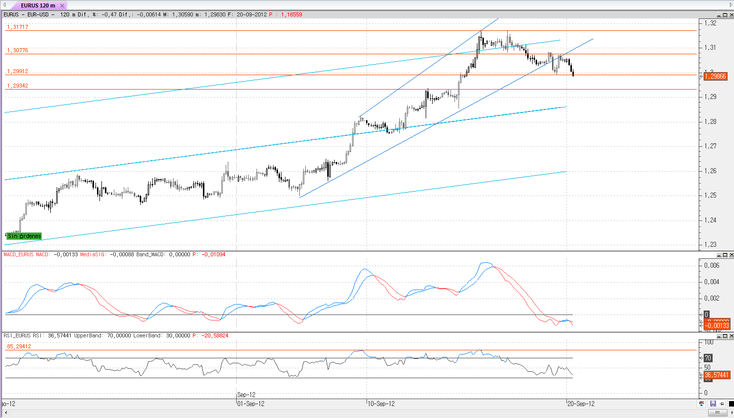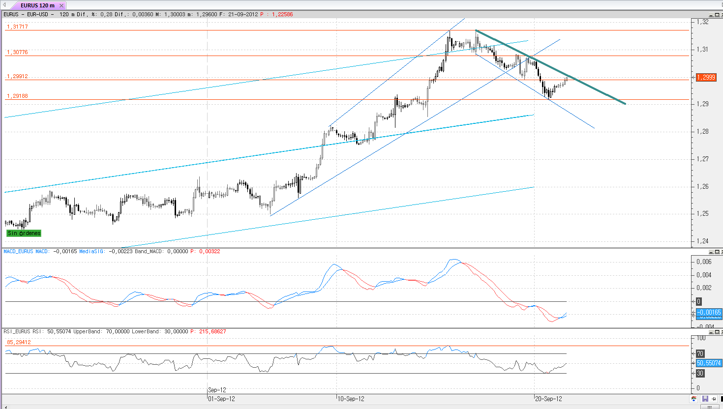 Buenos días, al final el par hizo un mínimo en 1.2826, llegando el rsi a su objetivo de caída. ¿Y ahora qué? Pues la verdad que hasta la vela de ayer en diario y la figura en 120m no tuvimos la confirmación de un posible giro al alza, con un primer objetivo en 1.30 y el segundo en 1.3065, el problema que se me presenta es ¿dónde colocar el stop? pues al gusto del consumidor, bien es cierto que no me gustaría que se perforara el 1.29.