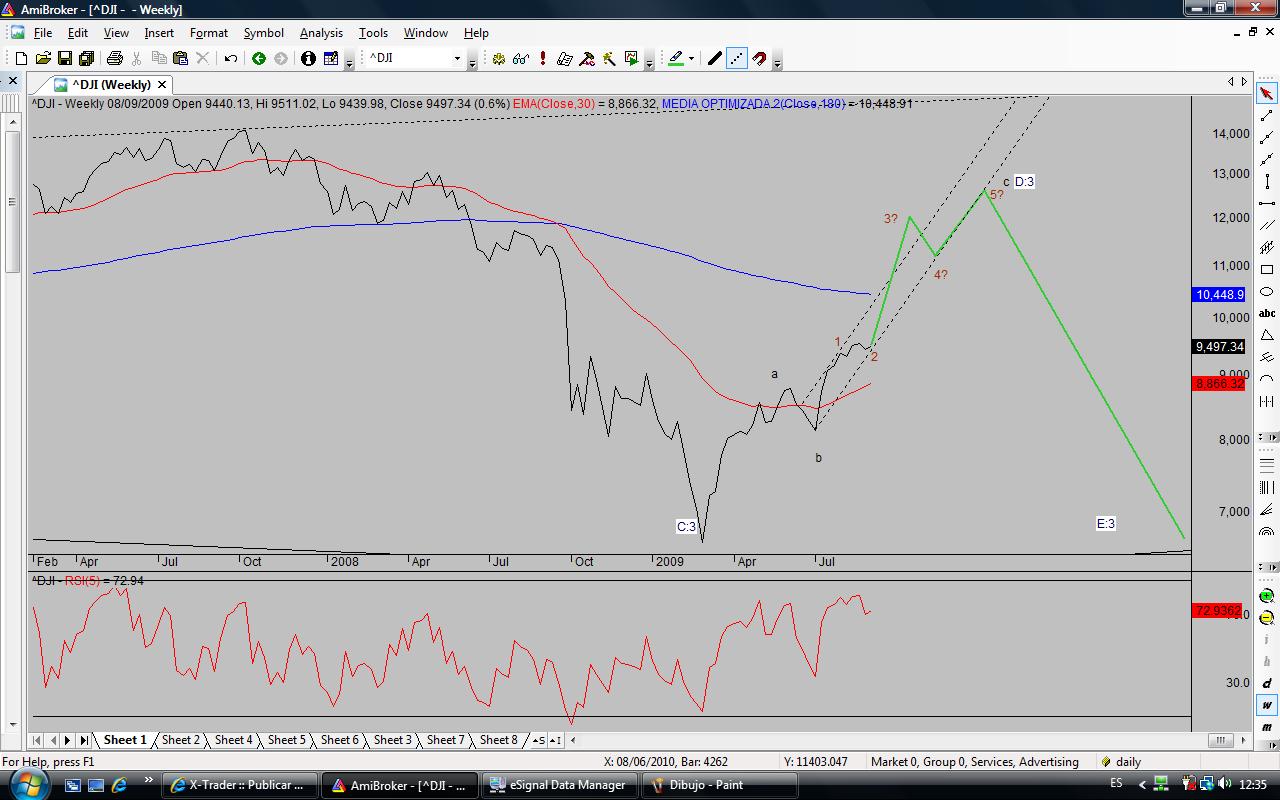 Más a corto enb esta subida lo que veo(seguro que hará lo contrario) es una onda D de igual grado que la C y esta onda D me da que va a ser rápida también en el tiempo ...hasta primeros del 2010 y luego vuelta fuerte pábajo con el crash de vil...