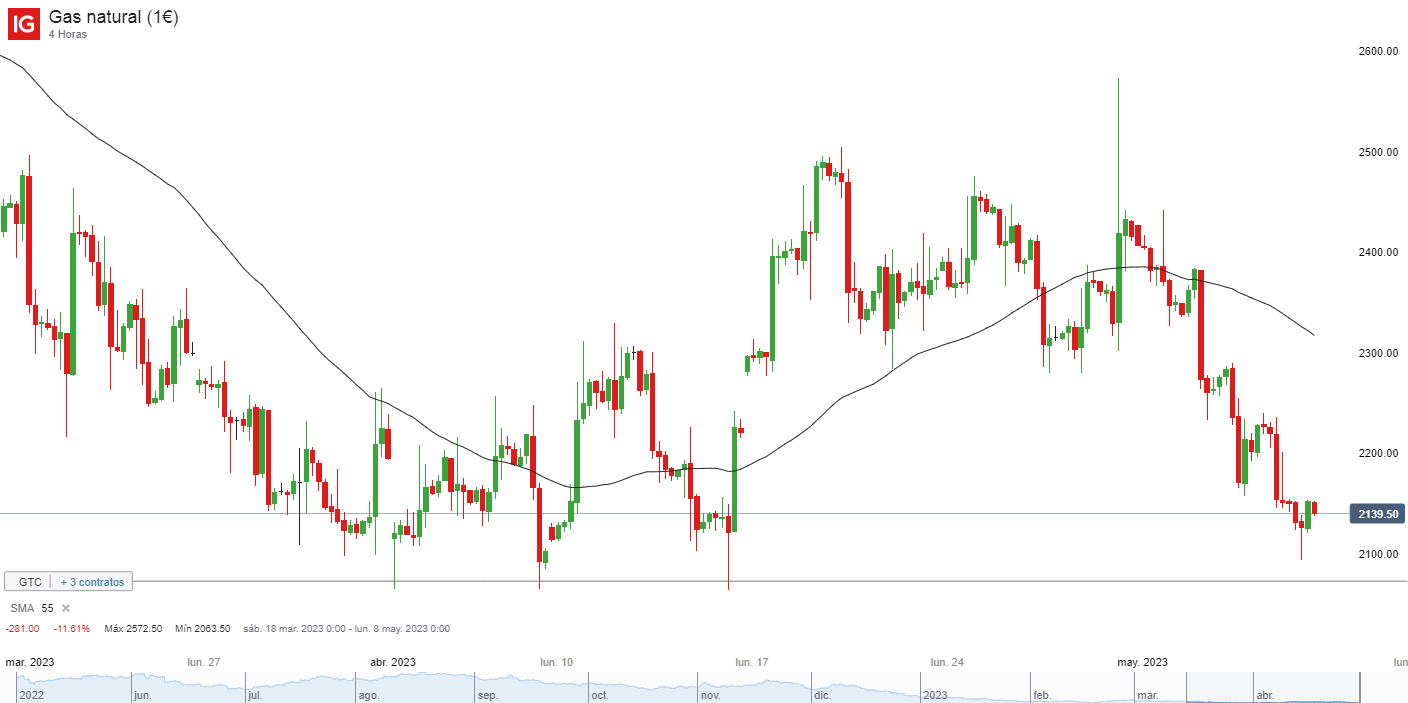 El Brent en 4h con una W en la base y ATR semanal cumplido...estoy comprado en el mismo desde 72 con stop amplio....Tambien tengo orden de compra puesta en Gas natural en 2076 varios contratos.