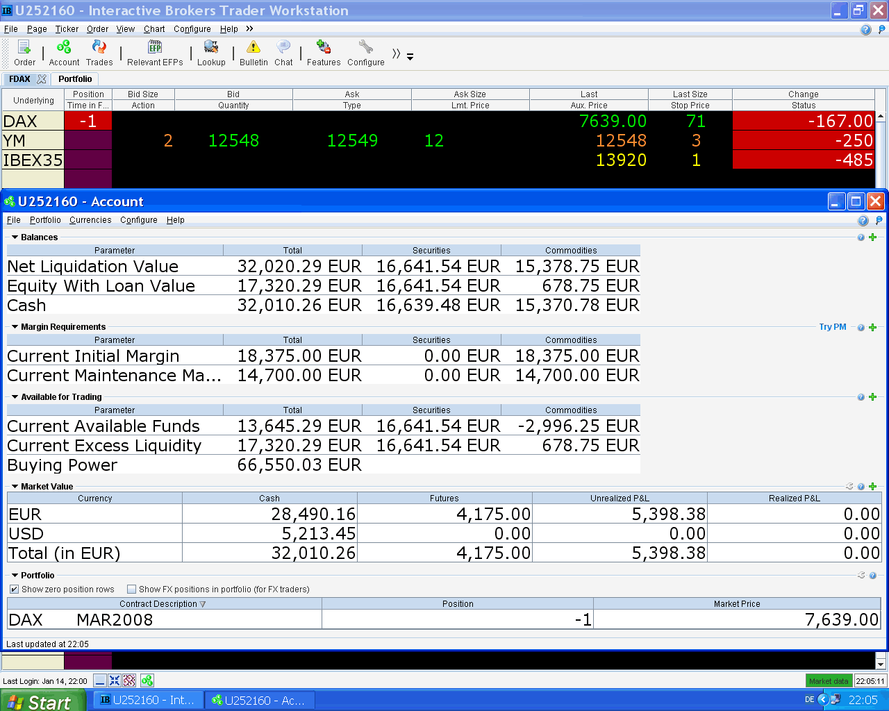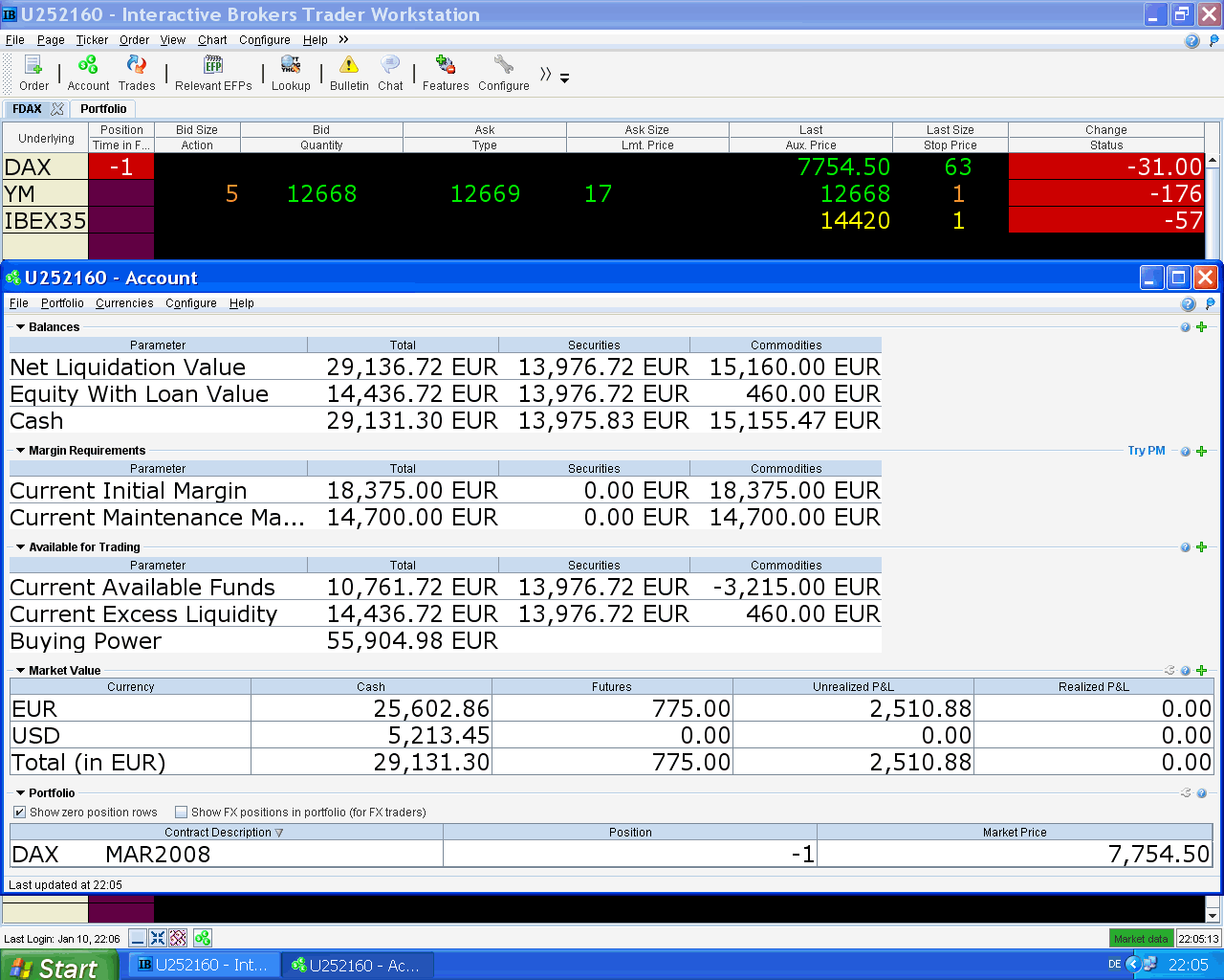 para que pueda triplicar el corto aún tiene que bajar mucho el DAX, en Interactivebrokers la garantía de mantenimiento para 1 contrato es 14.700 EUR, por el momento, si siguen bajando los mercados también las bajarán.