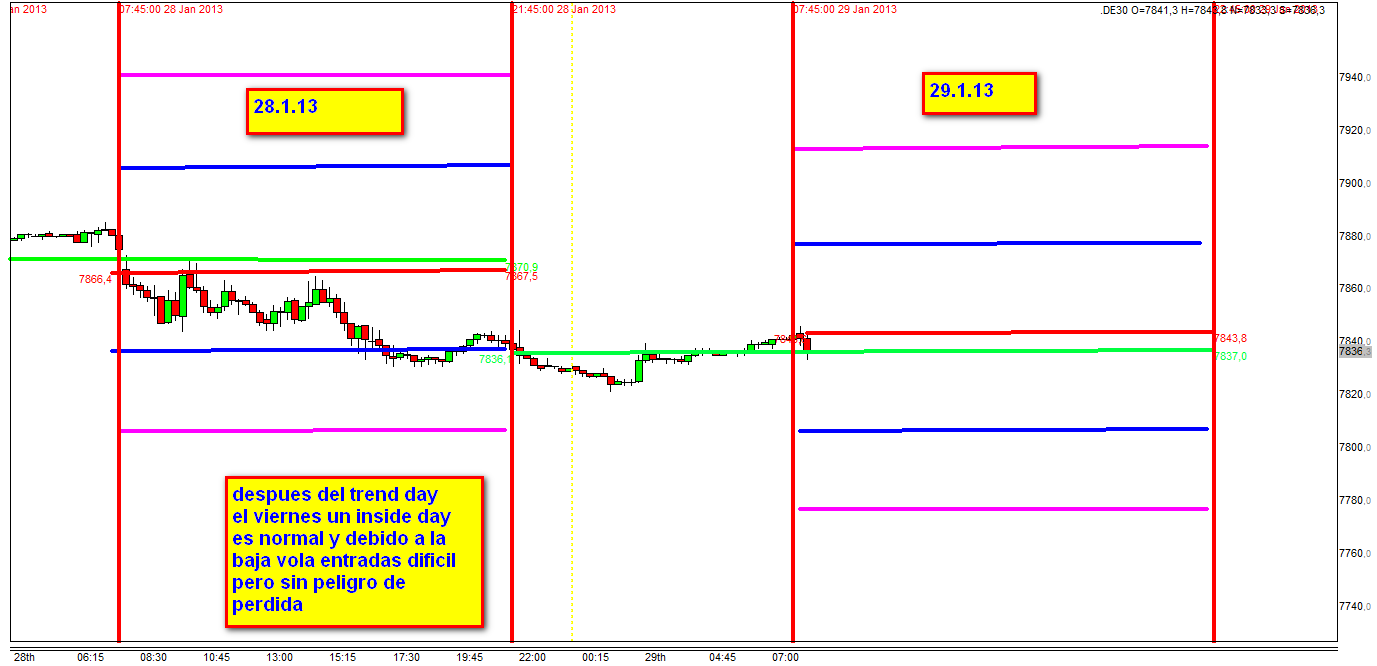 Ayer hemos visto un Inside Day que despues de un Trade Day el viernes era de suponer.