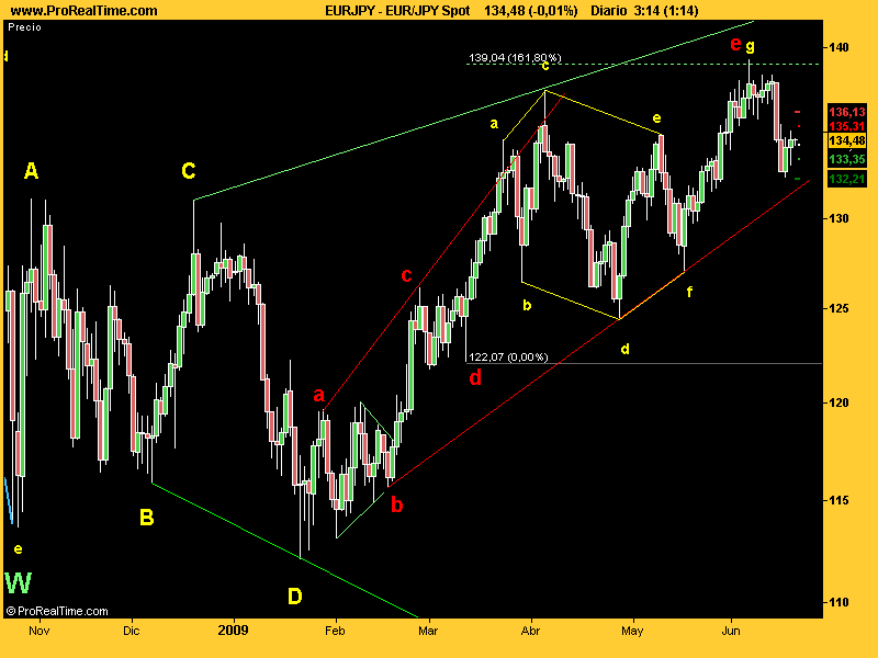 voy a poner mi recuento del euroyen, qu es el gemelito del SP y que dice que sa terminao un triángulo expansivo, con que menudo fostión se va a dar el euro yen y el mercao de acciones que ha hecho la misma pauta, pero más confusa