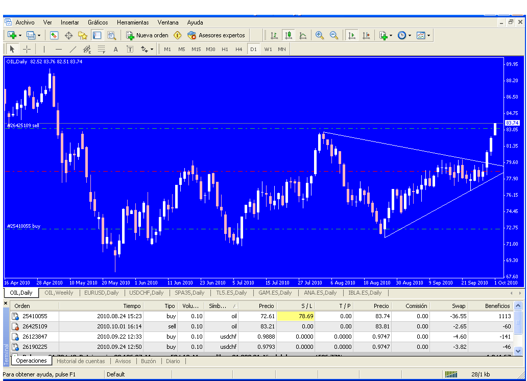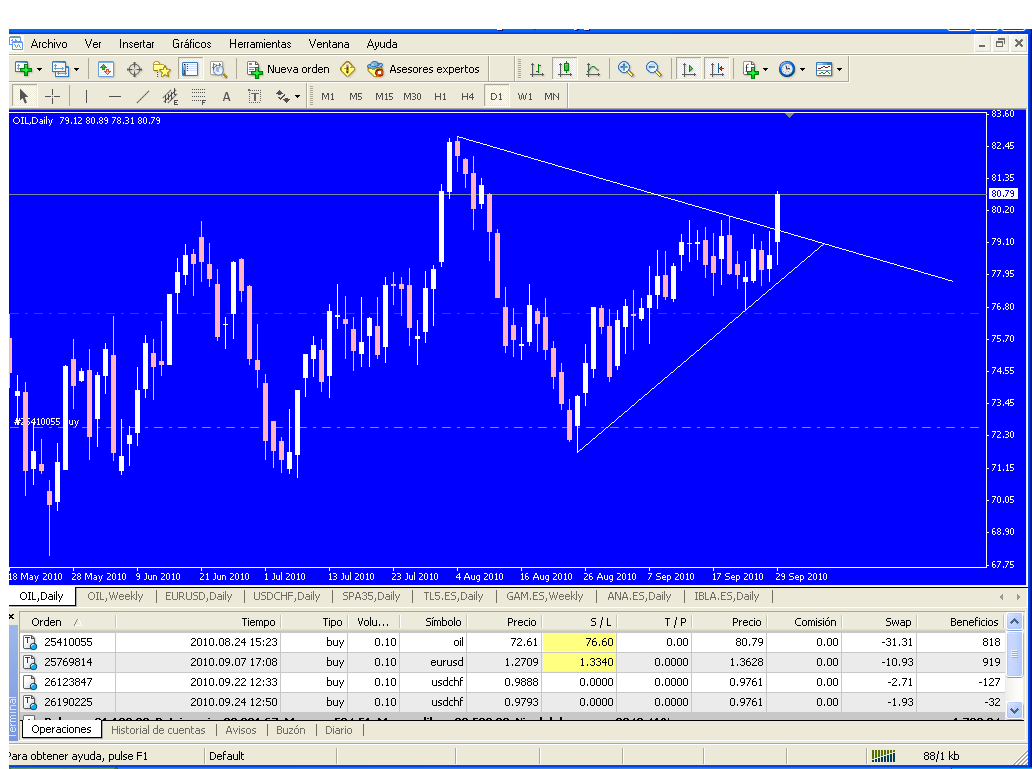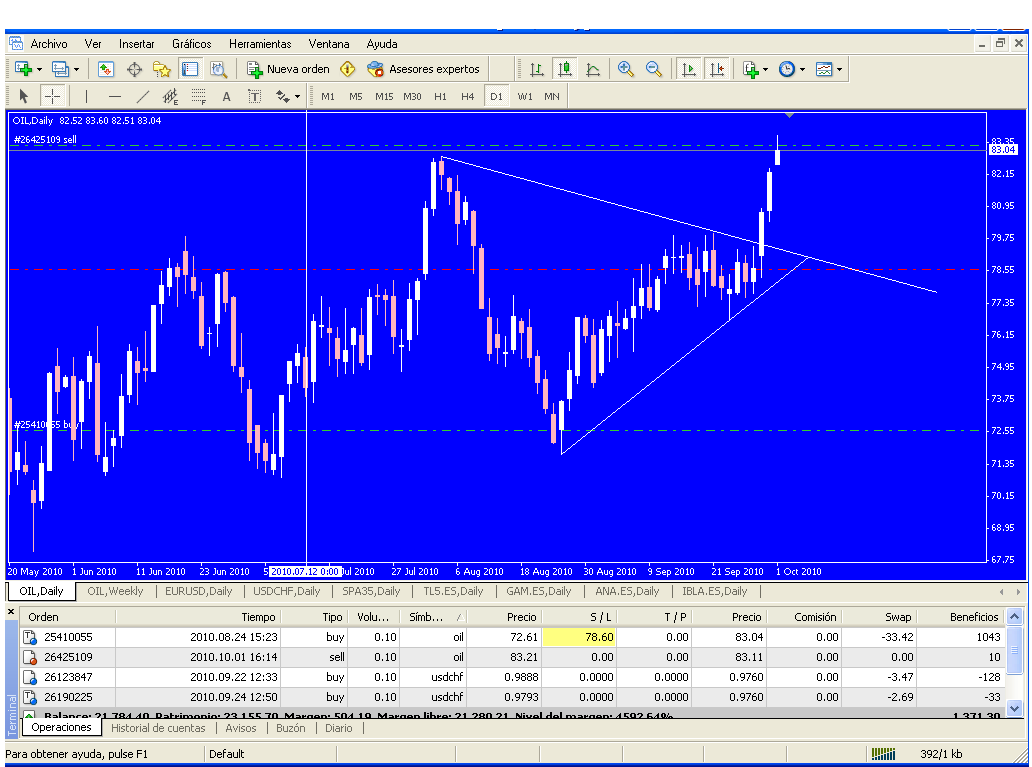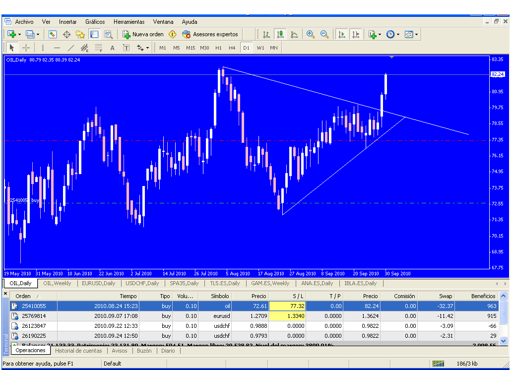 Tengo puesto un stop a la segunda posición tomada en el oil al igual que en el eurus.