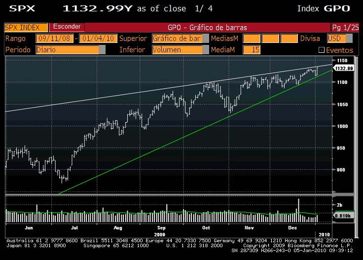 En fin que difícil saber , pero lo que esta claro que no hemos de intentar adivinar puntos, sino seguir direcciones, en este caso si lo que se kiere saber es la tendencia actual, sigue siendo alcista, aunque posiblemente estemos en un momento correctivo por el factor psicologico de las palabras de obama a los bancos...(pero creeis que los bancos no compraran sociedades de trading que actuen por ellos???