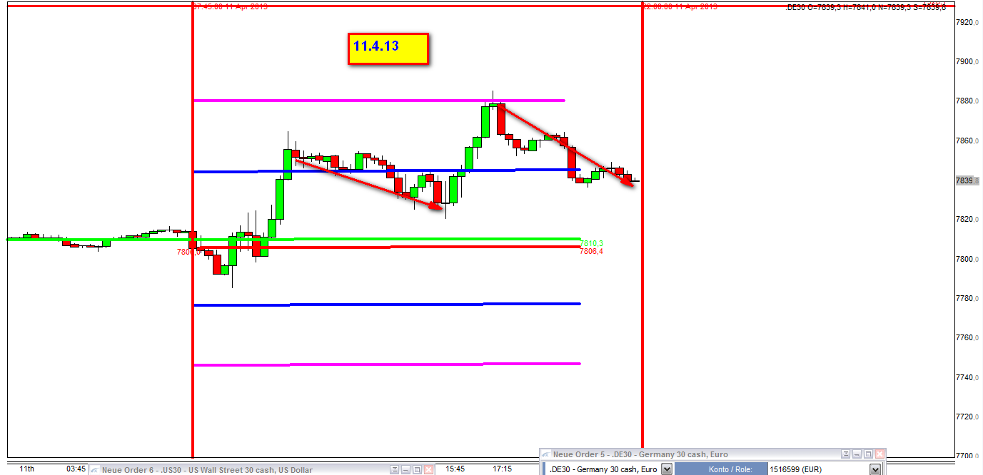 Debido al efecto de Jueves tenias que haber cerrado los US30 y girar la posicion DE30 cortos en DE30 largos . Hay que tener en cuenta que por la manana el FDAX tiene mas corrido que el DOW.