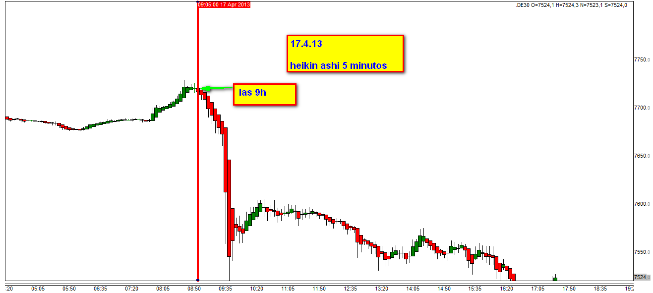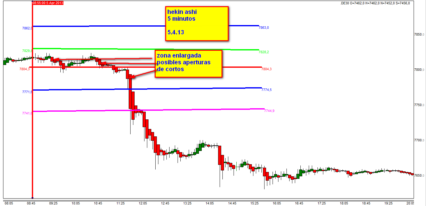 - Dado la debilidad durante la noche y despues de la apertura del XETRA-DAX a las 9h varias ocasiones se presentaron con heikin ashi en la zona enlargada ( vea grafico adjunto)