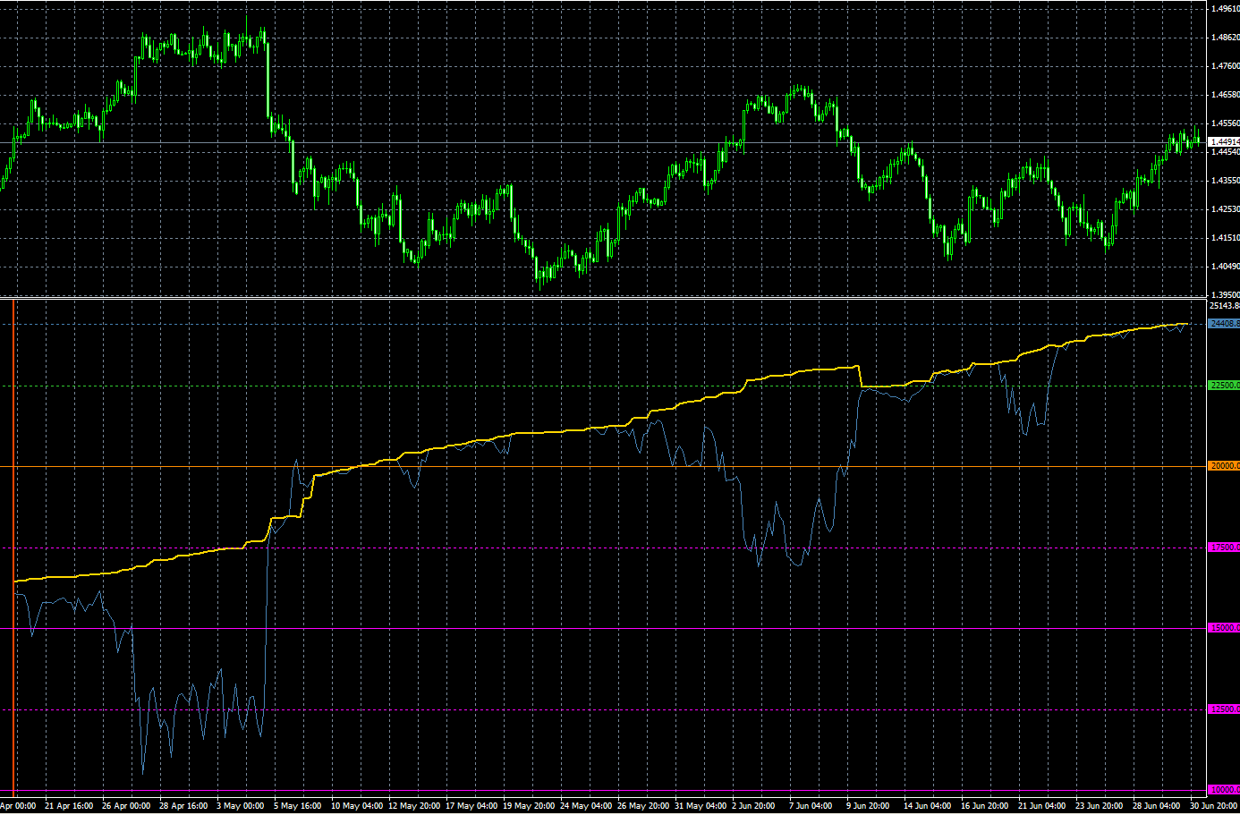 Esta semana está costando más hacer profits, ya que hemos operado todo el tiempo cortos y el precio ha subido unos cientos de pipos. Como el mercado tiene cierta lateralidad, el sistema corrige muy bien los DD intradiarios.