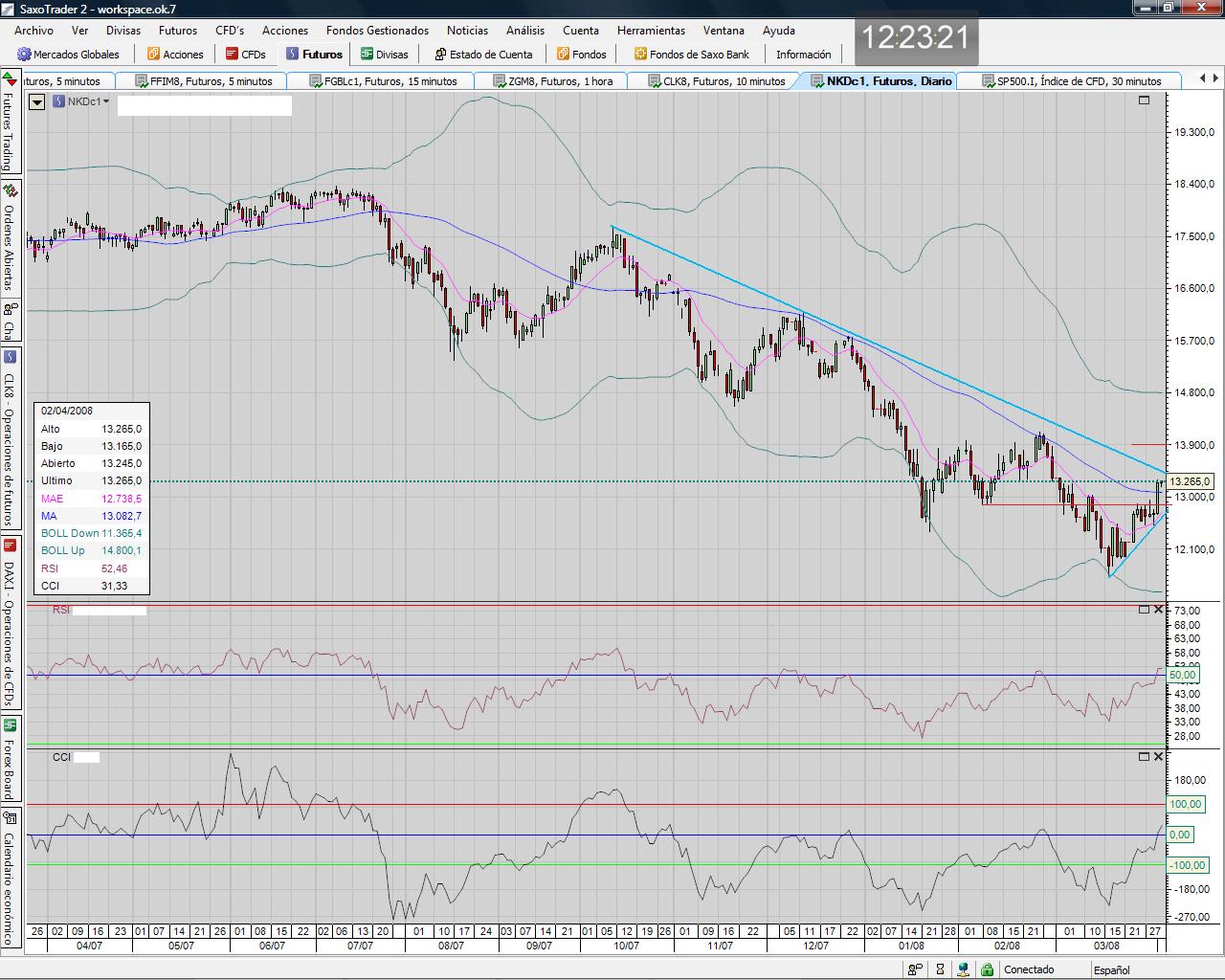 Otro "indicador adelantado" ke me gusta mucho es este gráfico del Nikkei dolar (el nikkei versión globex) , vemos como las tremendas caídas ke hemos sufrido en europa y usa ya las anticipaba con bastante antelación el nikkei. Kizá por eso de ser el pais del sol naciente .