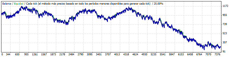 A partir de ese máximo relativo de la équity, el resto de máximos han sido siempre menores al máximo DD que ha tenido. Ha ido ganando unos 1.400 euros pero para llegar a ese beneficio la équity ha soportado antes pérdidas mayores que esos 1.400 euros.