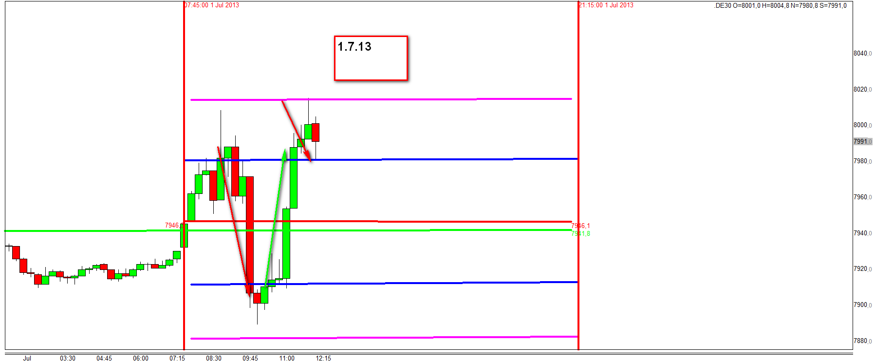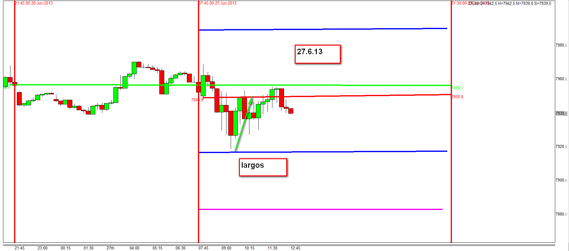 despues de dos dias alzistas y vola bajada reina la calma antes de las 14:30h hora de la publicacion desempleo USA. Buena entrada a la primera zona larga con vela retrociendo tal como explicado el fin de semana con