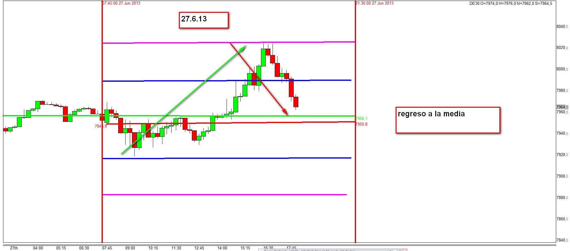 El regreso a la media es iniciado con un reverse sea DOW o DAX. Este reverse puede ocurrir en cualquier sitio