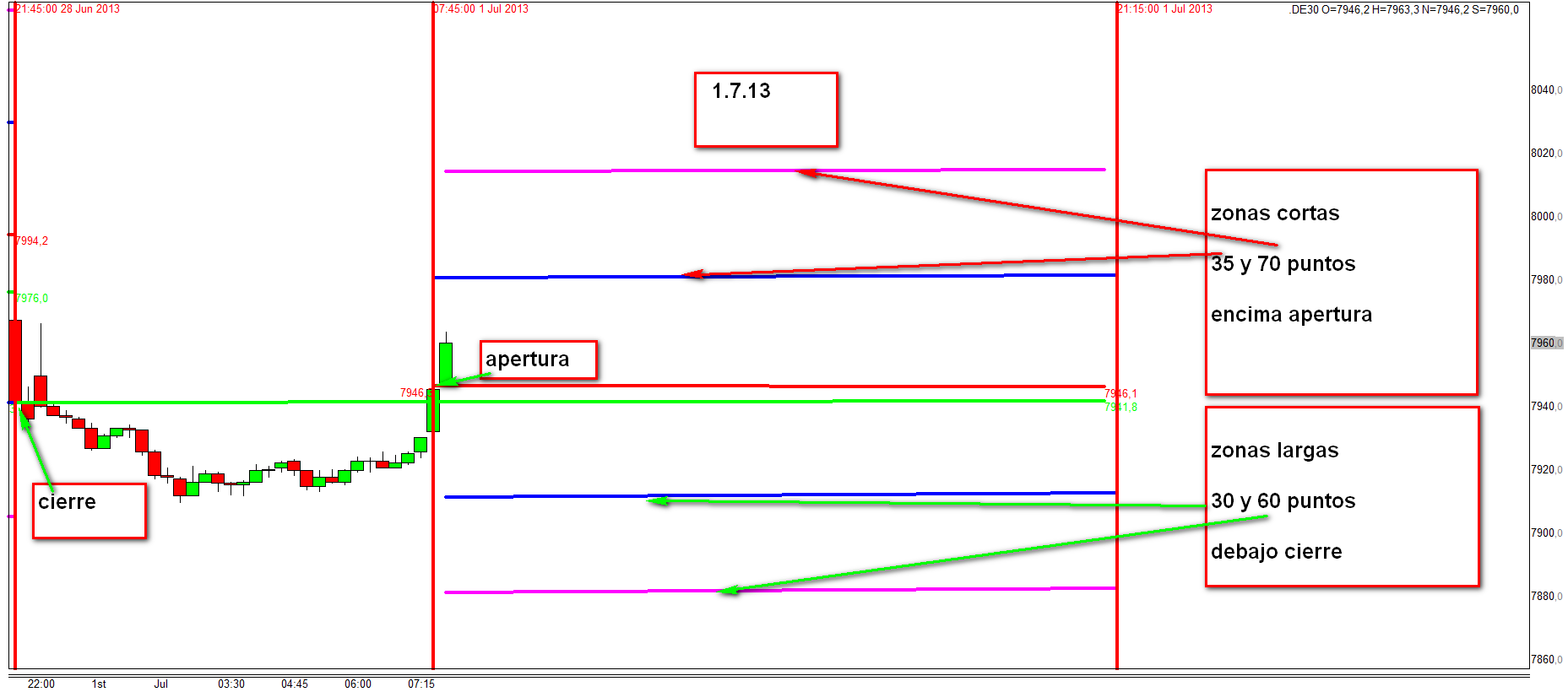 A parta de esta operativa se ofrecia cortos en la zona enlargada a las 9:05h mas el micro trading.