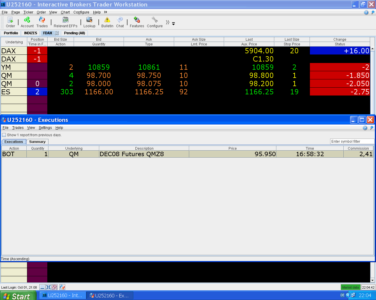 esperemos que entre hoy y mañana decidan los americanos si aprueban el paquete o no, yo creo que con un corto en el DAX y dos largos en el Mini S&P estoy bien posicionado, nervioso no estoy.