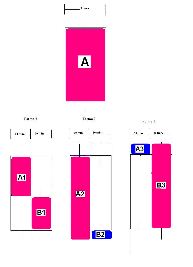 En una palabra, que analizando las velas completas de una hora en como se dividen en dos de media hora, yo solo me fijo en que hay dos formas posibles que son: