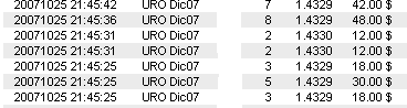 1 10/26/2007 02:11:24 2626403 EURUSD B .1 1.4291 10/25/2007 11:15:40 1.4344 36,94 € LimitProfit