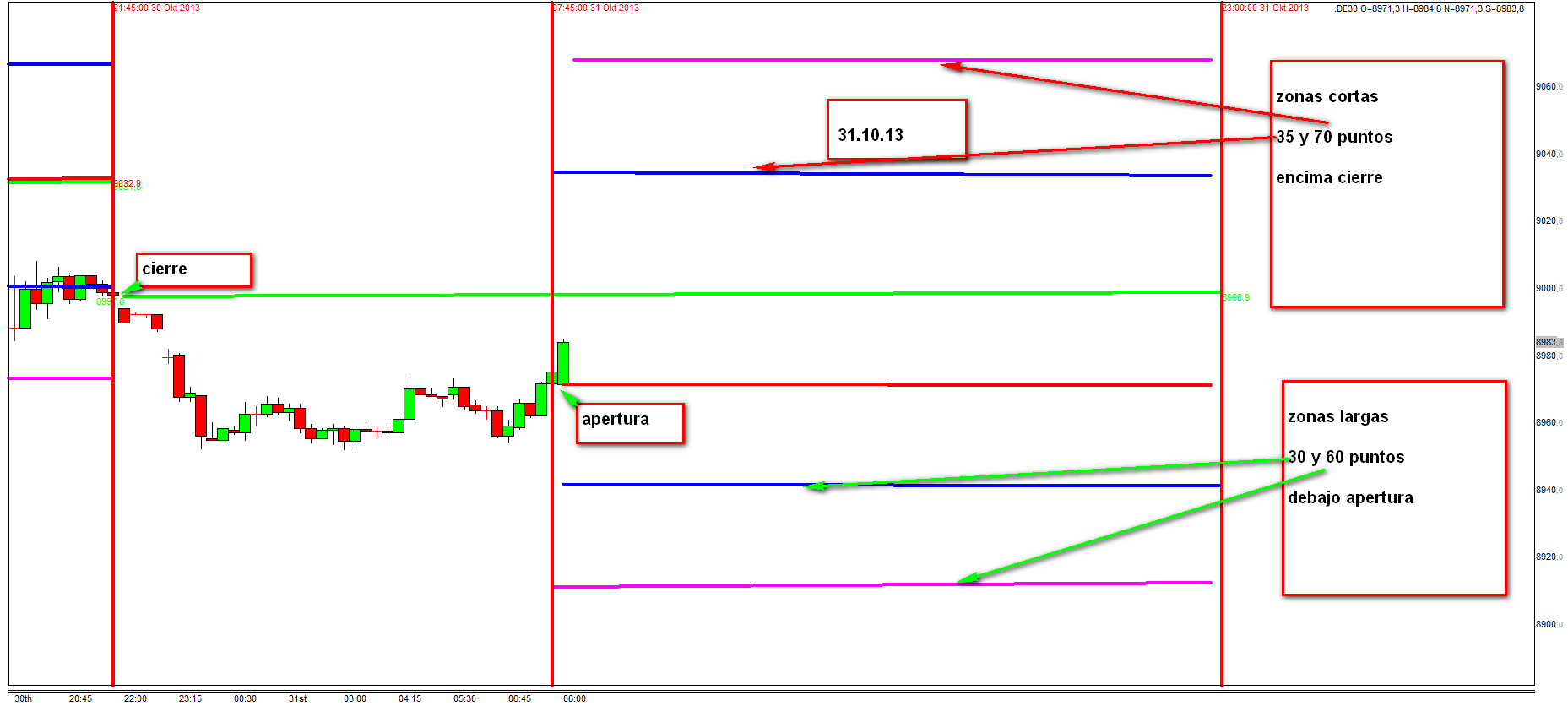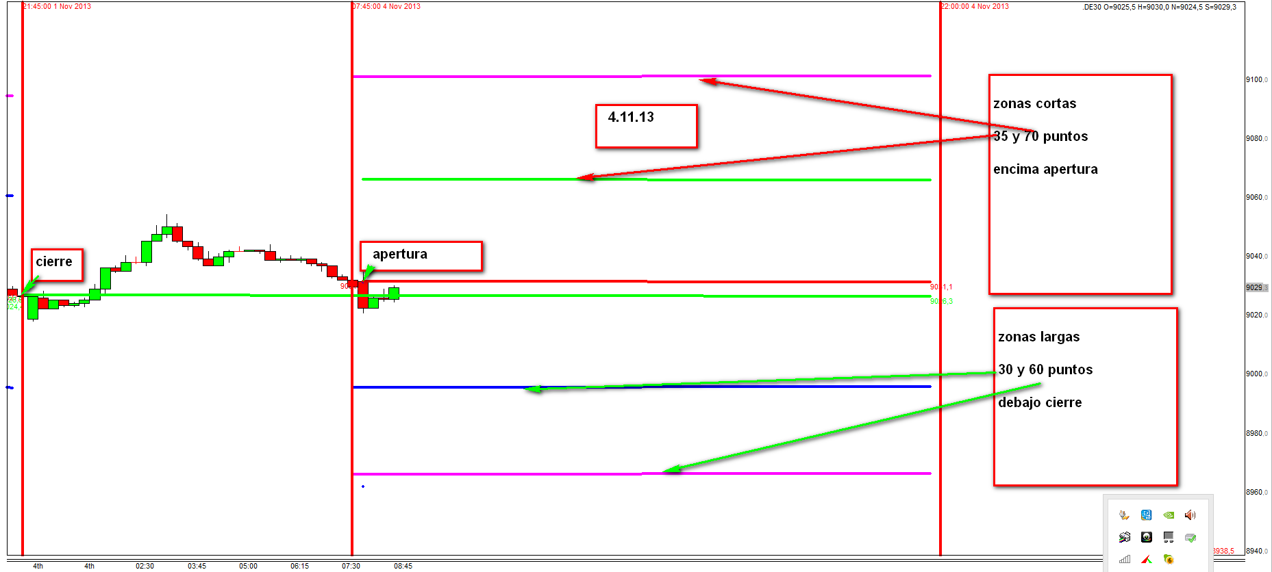 El cierre y apertura del dax lo tengo a 9030 y 9033 aproximadamente, teniendo la zona 1 de largos a 9000 .