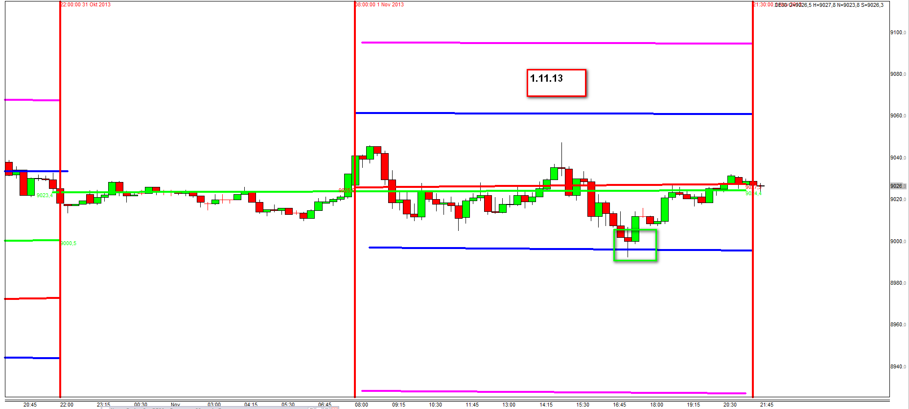 Despues de trend days o durante dias festivos un USA o en EU pero con apertura de EUREX el volumen del FDAX es muy reducido lo que se traduce en un recorrido limitado sin tocar zona alguna.