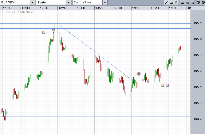 Pues el EUR-JPY se ha comportao pefecto, mínimo 165.01, lástima que no entró mi TP que tenía algo más abajo y me he salido con "sólo" 26 pipos.