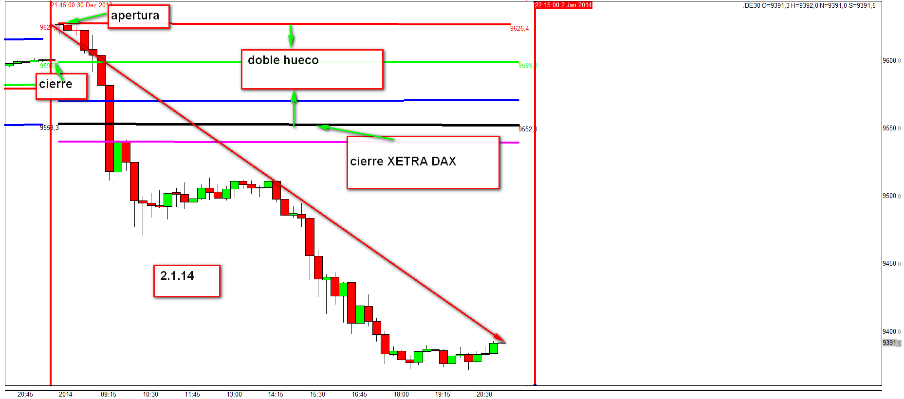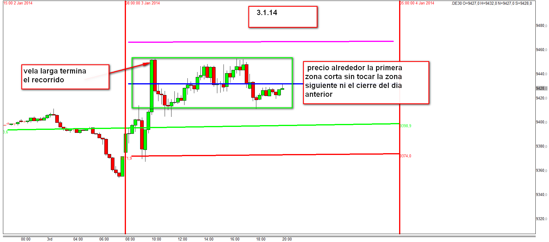 Al presentar La FDAX-TRADING-STRATEGIE en este foro he documentado por un cierto tiempo la fiabilidad de la misma. Se trataba de abrir posiciones en las zonas largas y cortas y cerrarlas con beneficios en la zona siguiente que podia ser tambien el cierre del dia anterior o la apertura del mismo dia. Para la gestion del riesgo un stop loss a tiempo ha sido aplicado bajo o encima de la segunda zona.