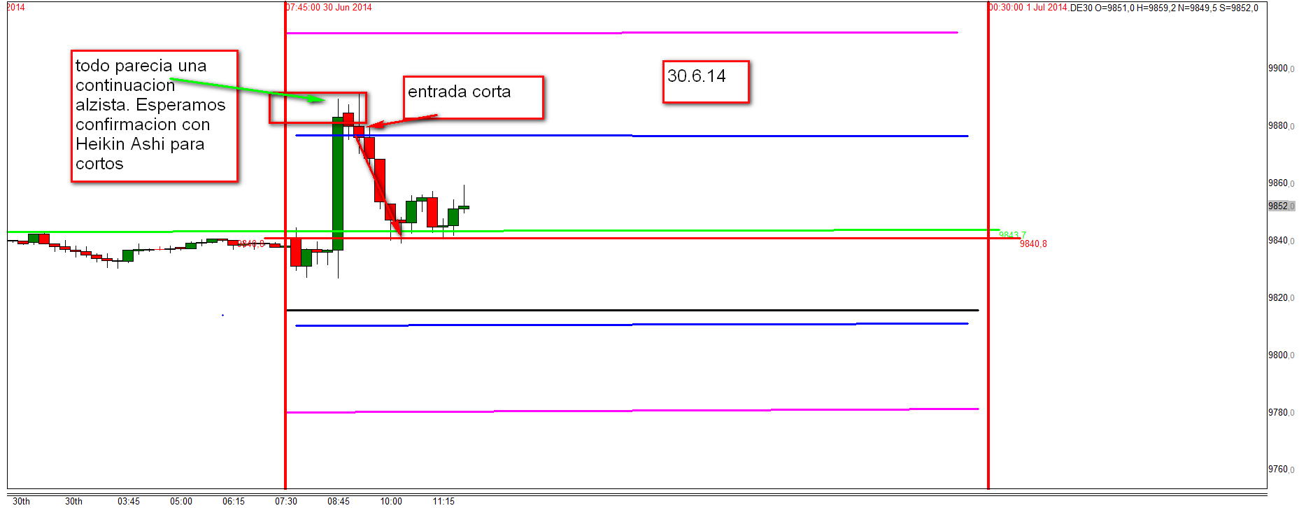 Se trata de la correlacion FDAX y futuros DOW ( DJIA FUT ). Es un Setup muy potente . Por regla general