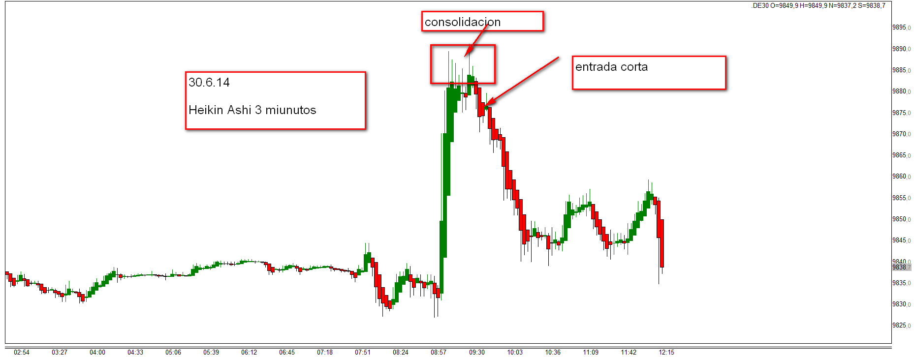 Siguio una consolidacion bastante larga hasta una Vela de Heikin Ashi de 3 minutos dio un senal para una