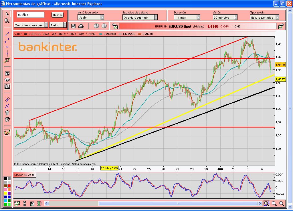 Pues parece q no terminó de romper el 1.41, o bien está corrigiendo un poco por la bajadita que lleva...