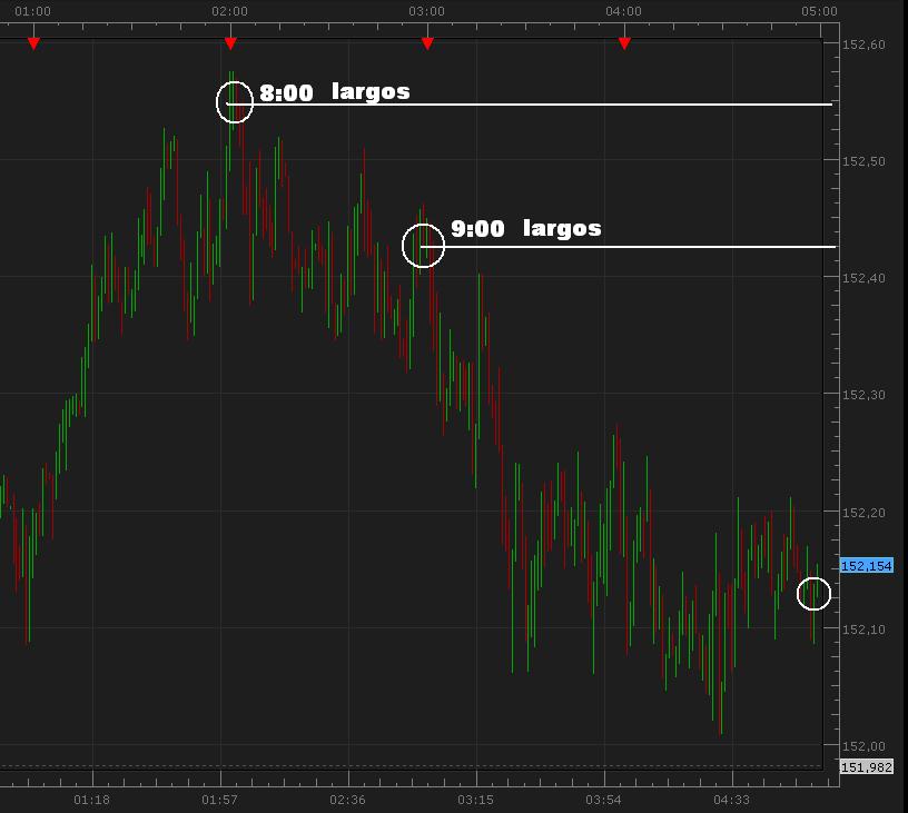 largos a las 8. en 152.50. segunda señal de largos a las 9, no hay señal de cierre a las 10. llegan las 11, y rondamos -40 puntos