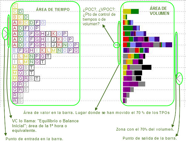 Para los usuarios de Visual Chart, pongo a continuación una explicación de la vista tipo Perfil de Mercado que ofrece, hasta donde llego por falta de información clara. Cualquier añadido, precisión, etc., será bien recibido.
