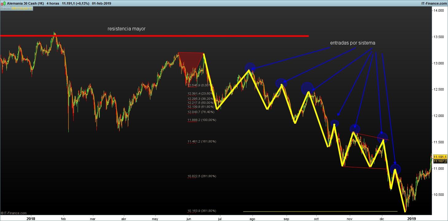 Esa es una entrada de sistema con reversal, pero hay otras que no hemos visto en detalle sin entrar en la reverSal porque las reglas del sistema todavía no las he puesto, hemos visto ejemplo de entradas a largos por sistema en reversal, pero hay otras entradas que no se entra en la reversal de inicio del movimiento en los retrocesos en patrones de V a largos y V invertida a cortos en tendencias establecidas, esas no las hemos visto, ni las entradas en los rangos tampoco, ya las iremos viendo.