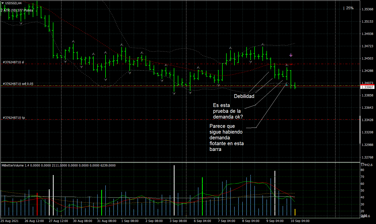Un análisis similar pero en corto en USDSGD.