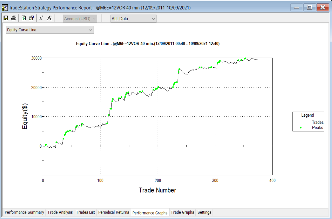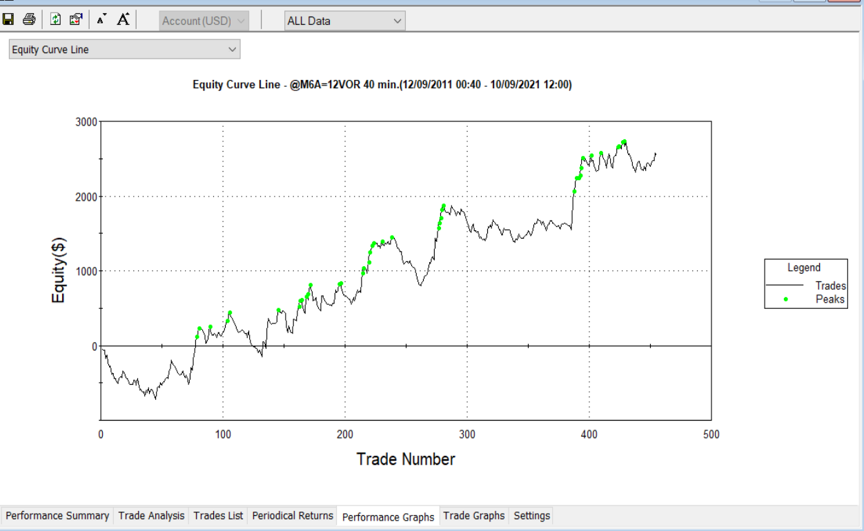 Por ejemplo, para el EURUSD, operando con tres contratos tiene esta curva: